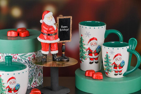 Entra no espírito natalício com esta encantadora caneca em cerâmica com ilustrações em relevo do Pai Natal e da árvore de Natal. Com tons festivos e uma colher encaixada na asa, é perfeita para saborear chocolate quente, chá ou café nas manhãs frias de inverno. Uma peça alegre e funcional, ideal para oferecer ou para completar a tua coleção natalícia.
