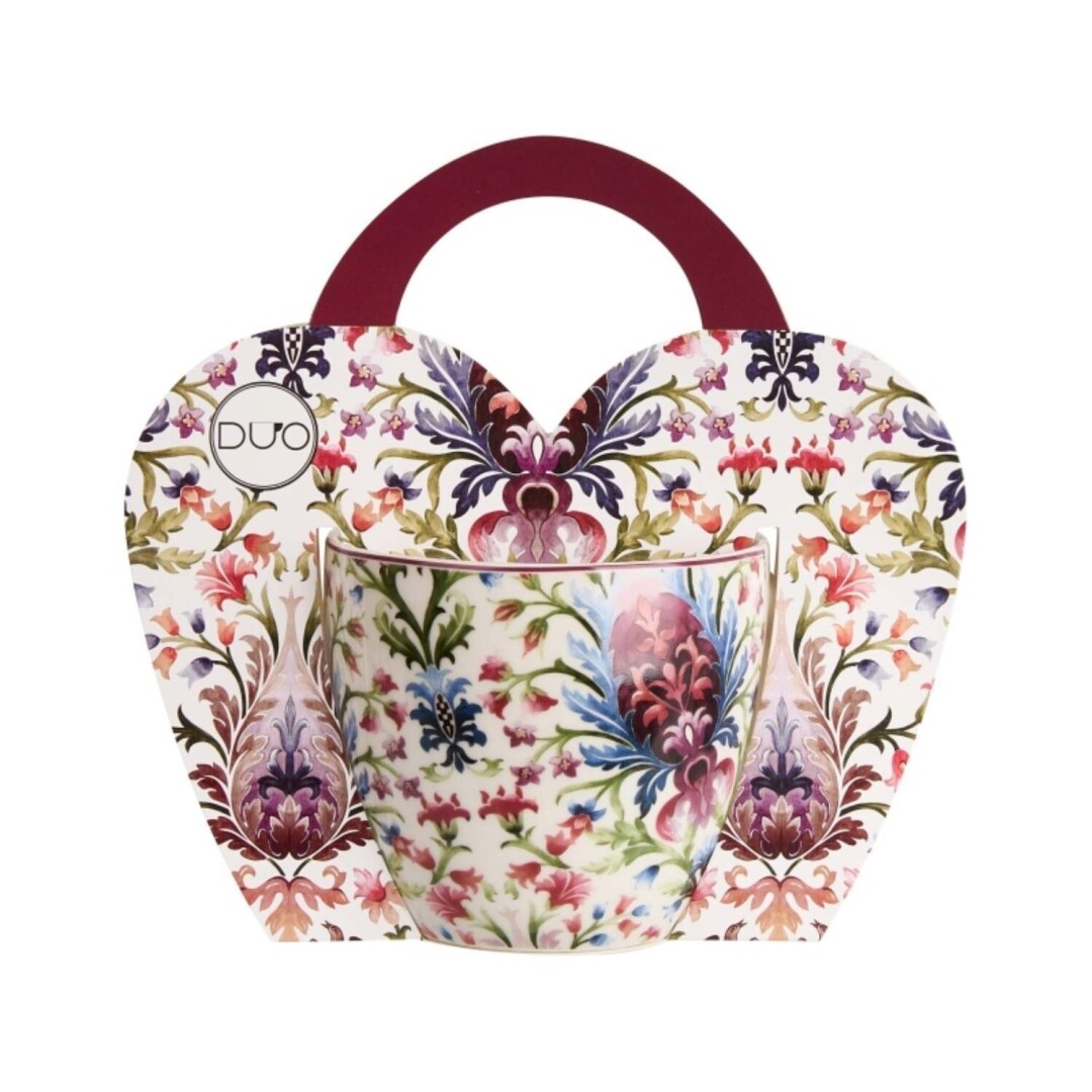 Caneca com delicado padrão floral.
