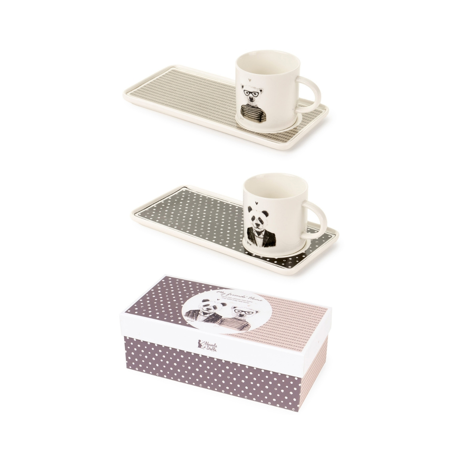 Este encantador conjunto da coleção My Friends’ Home combina uma caneca em porcelana com um prático tabuleiro, criando a solução perfeita para servir chá, café ou pequenas pausas ao longo do dia. O tabuleiro permite transportar facilmente a caneca, podendo também ser utilizado para acompanhar com um pequeno doce ou bolacha.