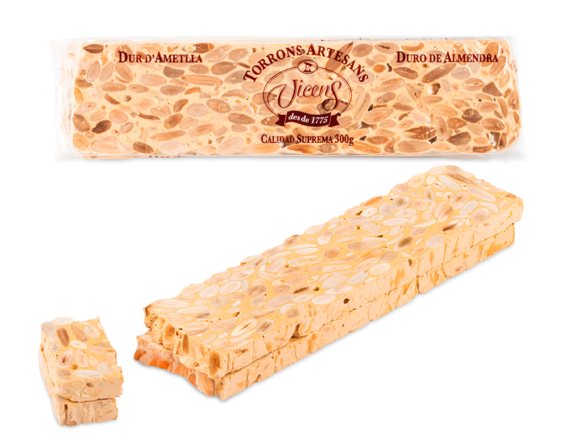 O clássico nougat duro de amêndoa, uma das especialidades mais emblemáticas da casa. Elaborado de forma artesanal, combina amêndoas selecionadas com mel, resultando num sabor autêntico e numa textura crocante característica.