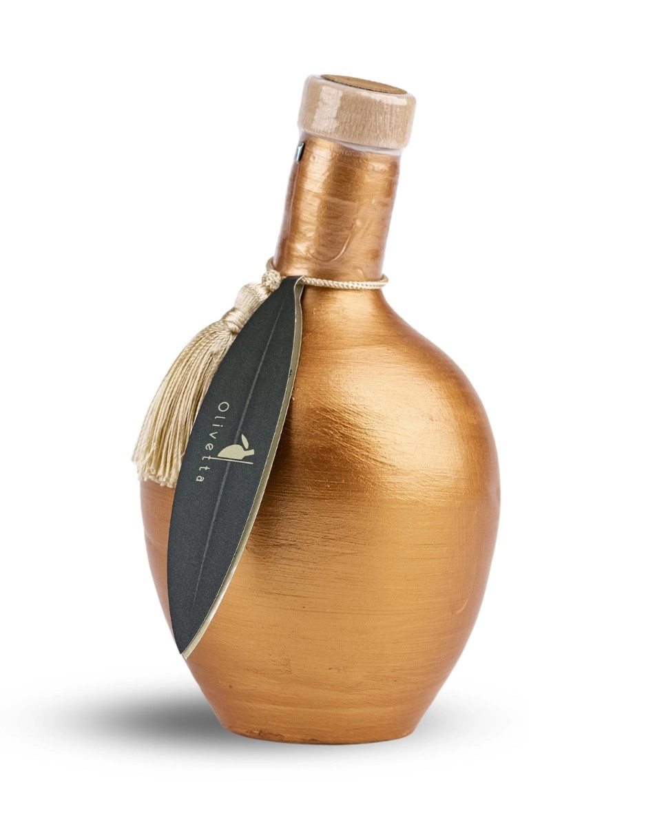 No seu interior encontra-se um azeite virgem extra italiano Murgia Dei, obtido exclusivamente a partir de azeitonas da variedade Coratina, através de um cuidadoso processo de extração a frio, que preserva todas as suas qualidades naturais.